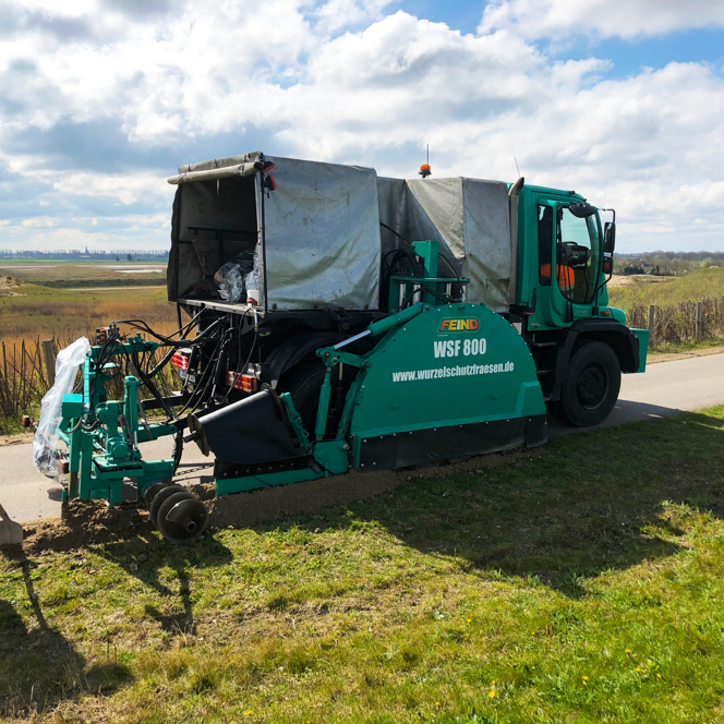 Beim Einsatz von Wurzelschutz können wir die WSF800 einsetzen: eine Wurzelschutzfräse für den maschinellen Einbau unserer Wurzelschutzgitter.