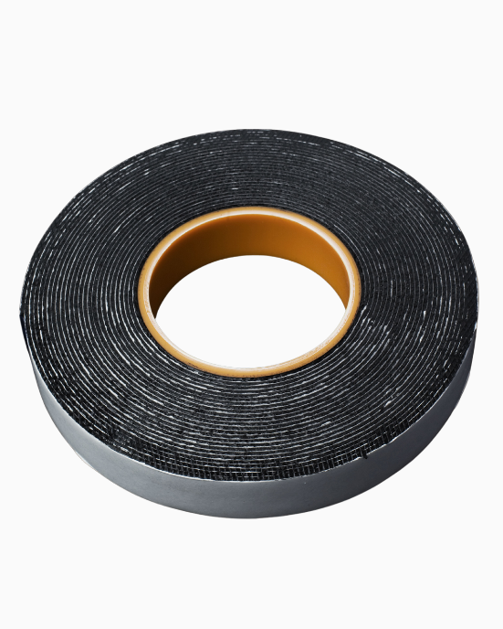 Zweiseitiges Klebeband aus Polyethylengewebe mit einer Beschichtung aus unvulkanisiertem Gummi auf beiden Seiten.