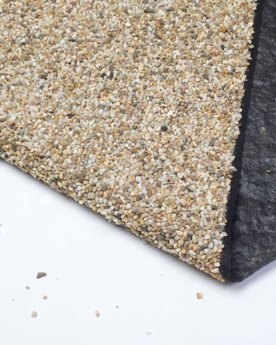 Schafft einen natürlichen Übergang zwischen Garten und Teich. Die Steinfolie besteht aus einer Vliesschicht, die mit einer Schicht aus feinen Kieselsteinen in verschiedenen Farben überzogen ist.