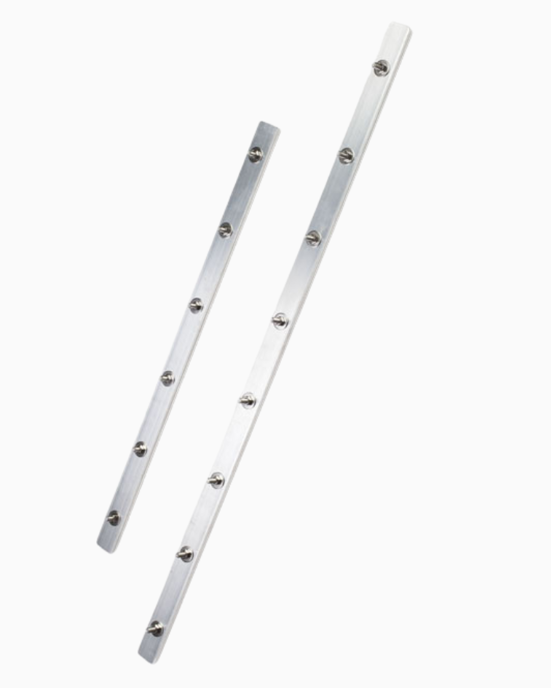 The aluminum joining strips are specially designed for attaching HDPE (root protection) screens together. The two aluminum strips are each placed on one side of the overlap and fastened together by the screws provided.