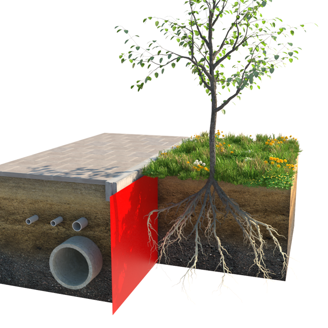 Wanneer een scherm binnen 2 meter van de boomwortel geplaatst moet worden, wordt wortelgeleiding geadviseerd. Een wortelgeleidingssysteem is voorzien van verticale ribben die functioneren als grondverankering. Bovendien zorgen deze geleidingsribben ervoor dat boomwortels naar beneden geleid worden, om zo te voorkomen dat er een ‘bloempoteffect’ ontstaat
